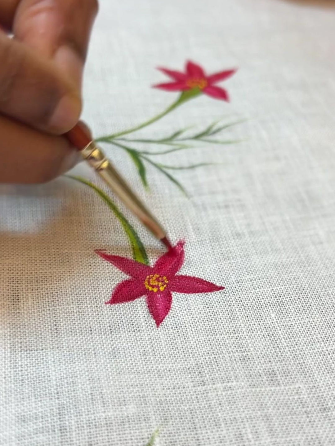 Introducing our new hand-painted linen shirts, where tradition meets artistry. These short-sleeve shirts, featuring a timeless Cuban collar, are crafted from 100% pure linen for unmatched comfort. Each shirt showcases intricate hand-painted motifs of flowers inspired by those traditionally used in Kerala's Pookalam (Flower Rangoli), a vibrant symbol of Onam celebrations. Hand-painted by local artisans, every piece is unique, embodying the rich cultural heritage of Kerala. Pair these versatile shirts with our linen breeze trousers or a traditional mundu to give your Onam festivities a stylish twist.