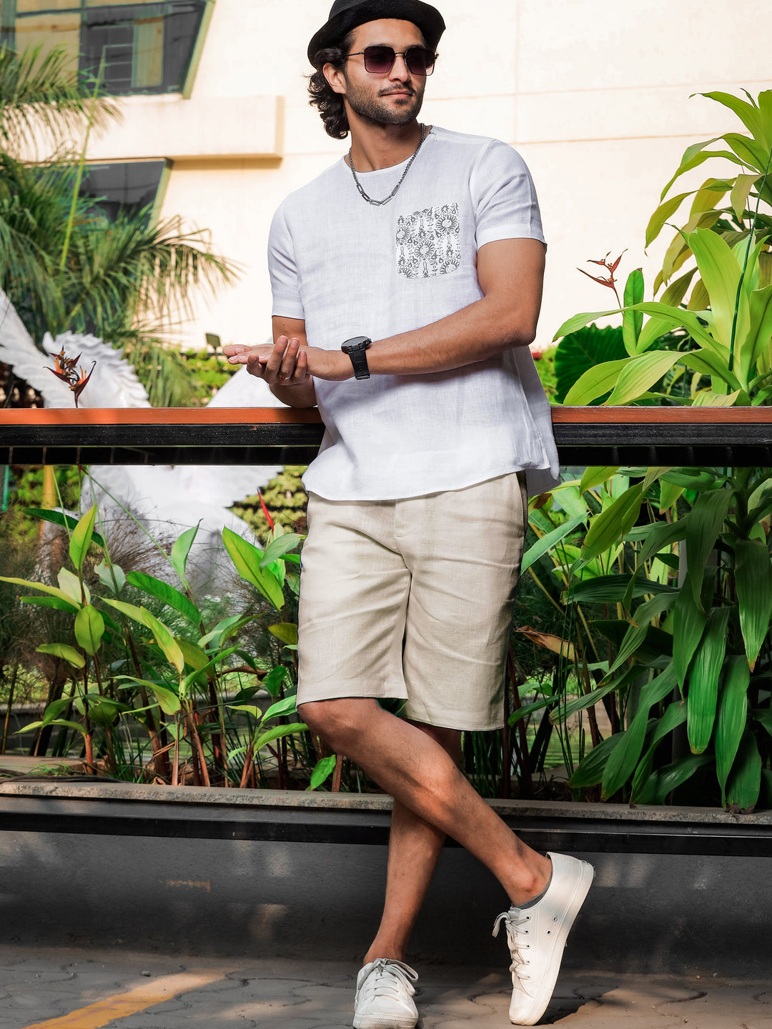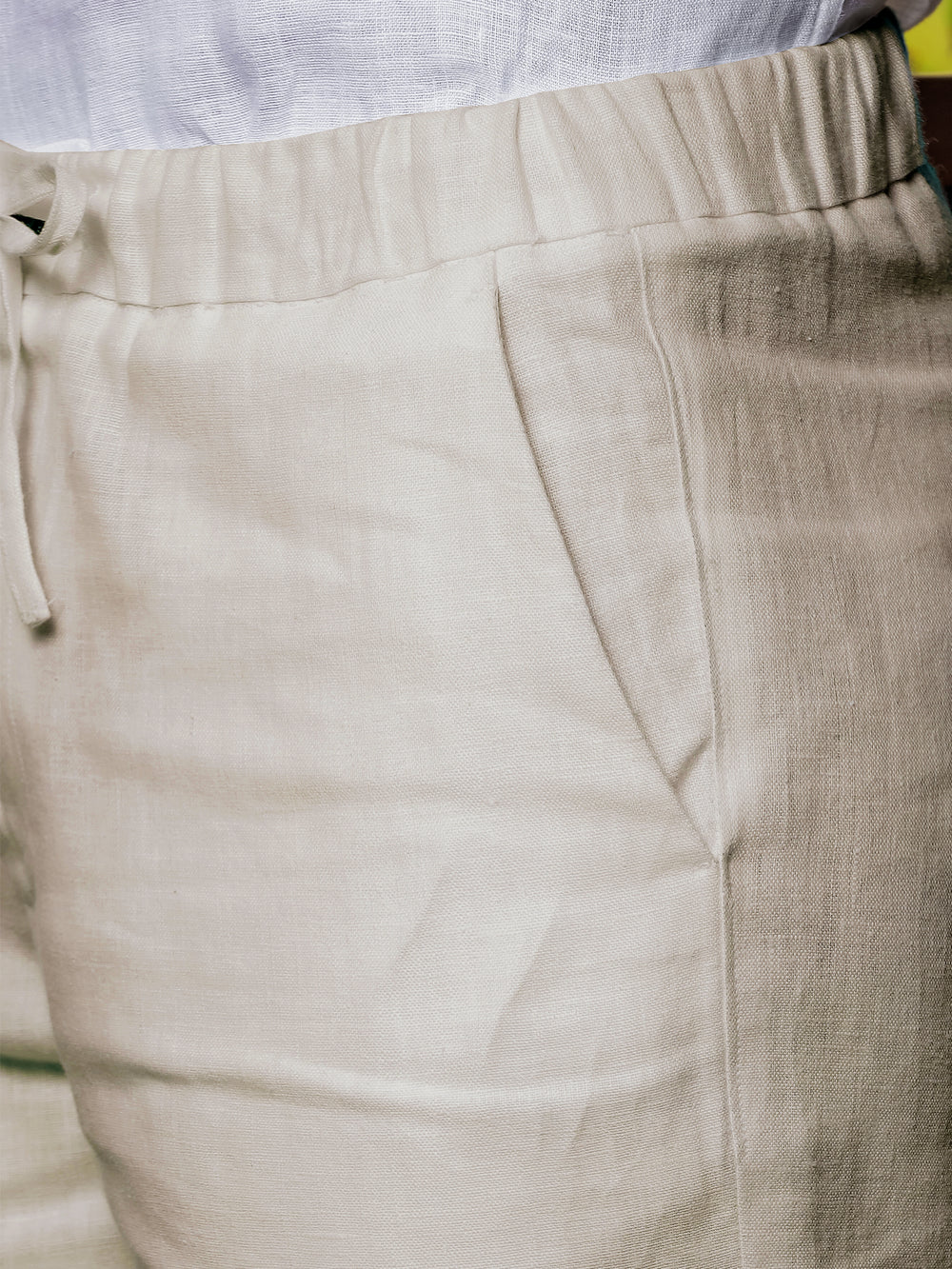 Ecru drawstring shorts crafted from pure linen, featuring elastic for added comfort and coziness. Perfectly complementing our linen shirts and t-shirts, these shorts make for a stylish and comfortable ensemble. Your perfect travel companion.