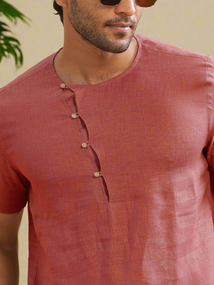 Elevate your casual wear with a twist: our Evan pure linen t-shirt. Featuring distinctive wooden buttons arranged diagonally, this tee transforms a classic design into a stylish statement piece. Crafted from breathable linen, it ensures both comfort and standout style. Upgrade your wardrobe with this unique and versatile t-shirt.