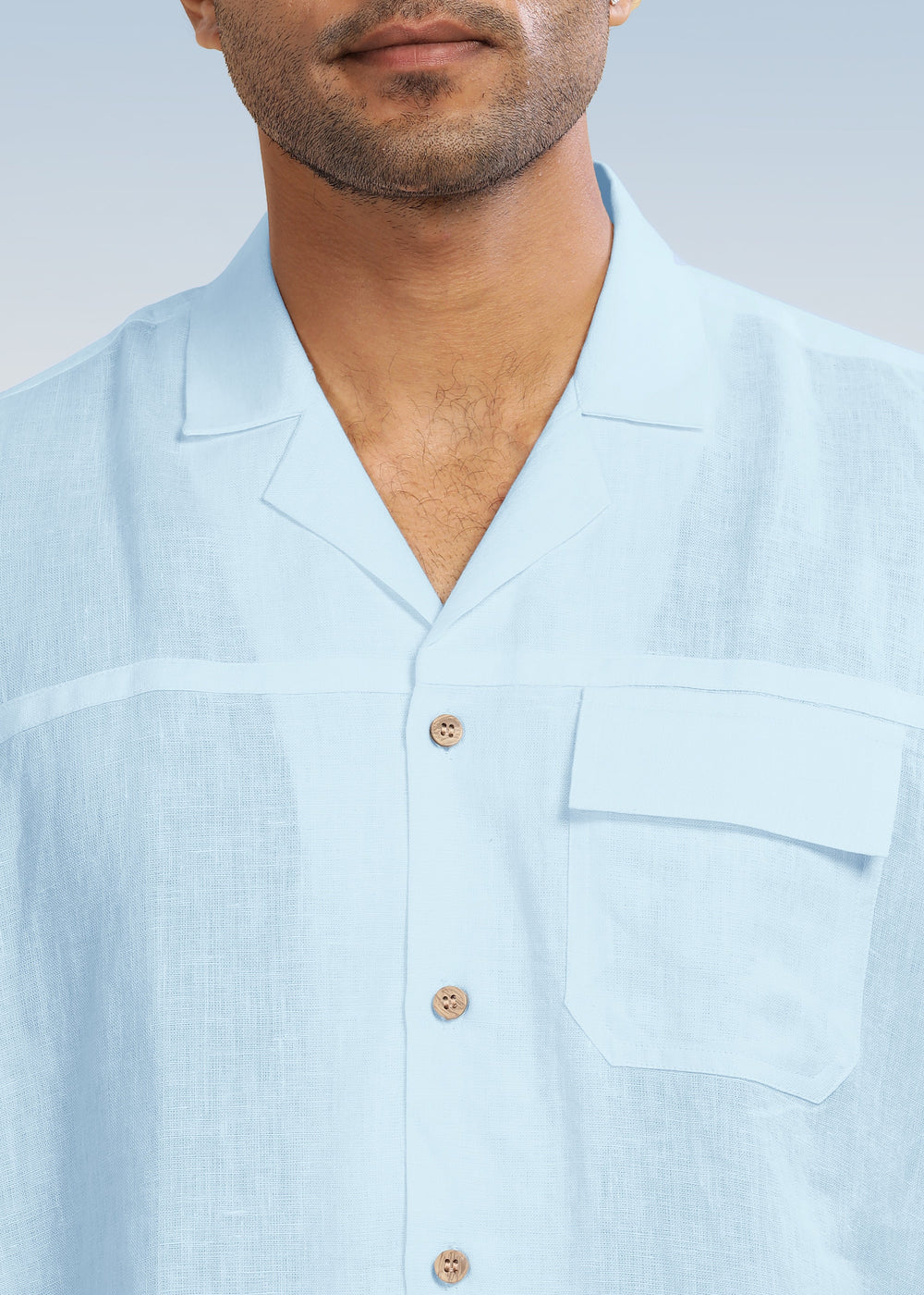 Jonas - Oversized Pure Linen Cuban Collar Short Sleeve Shirt - Sky Blue