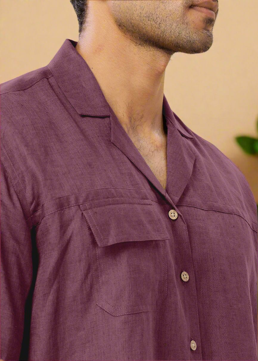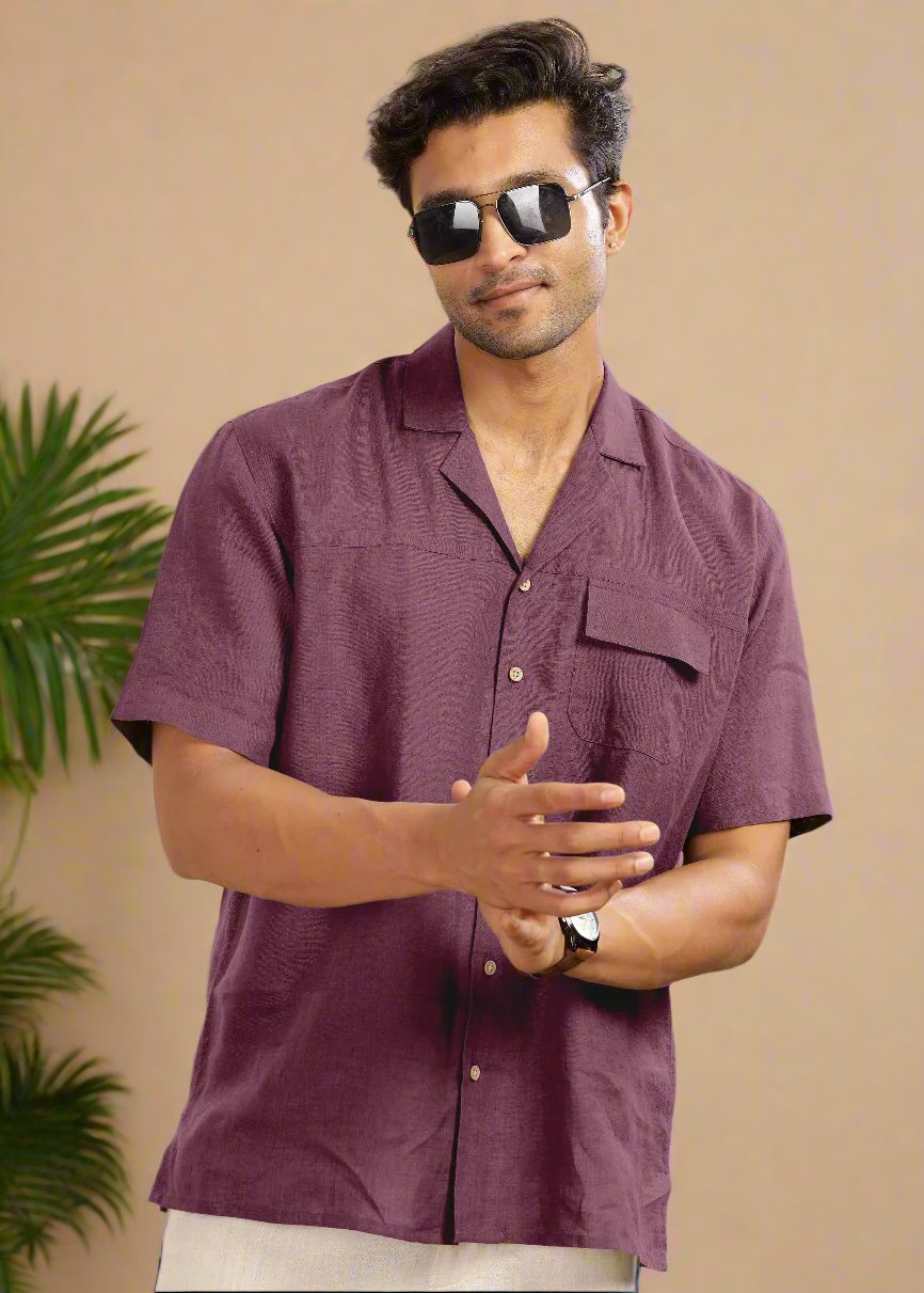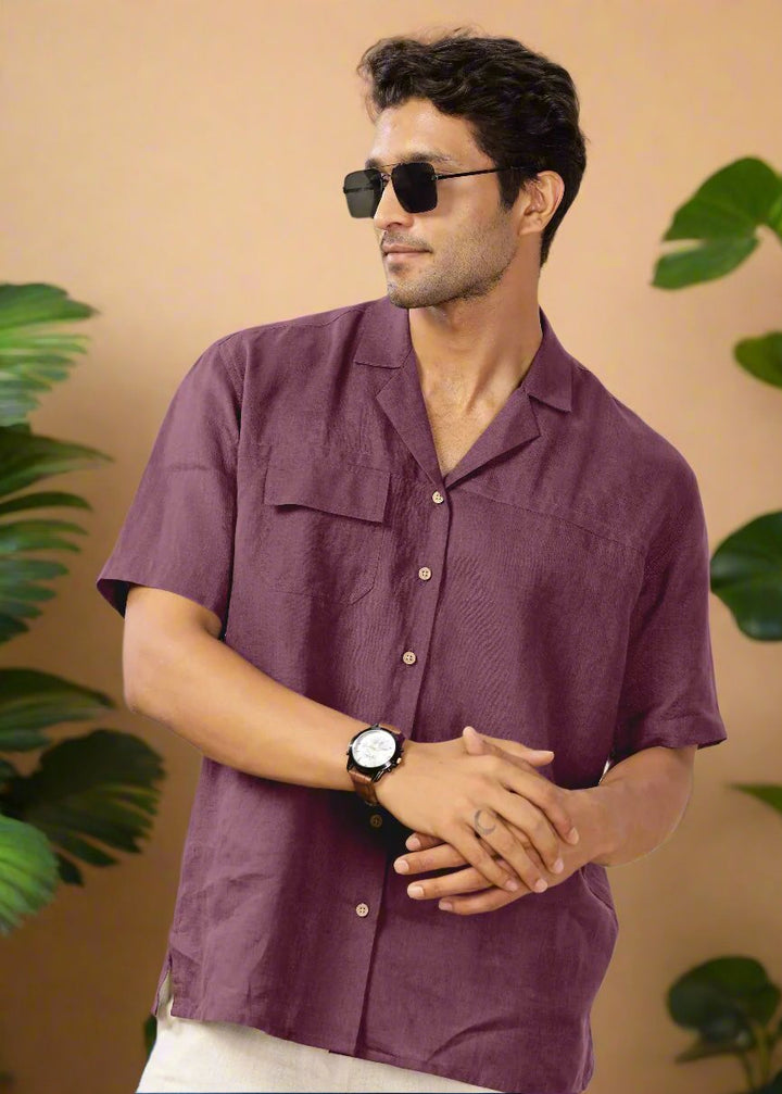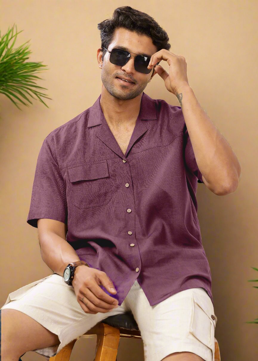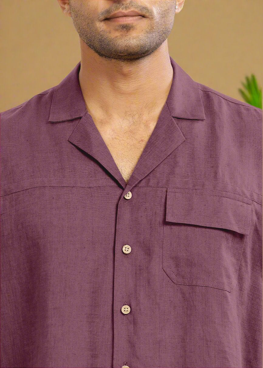 Jonas - Oversized Pure Linen Cuban Collar Short Sleeve Shirt - Twilight Purple