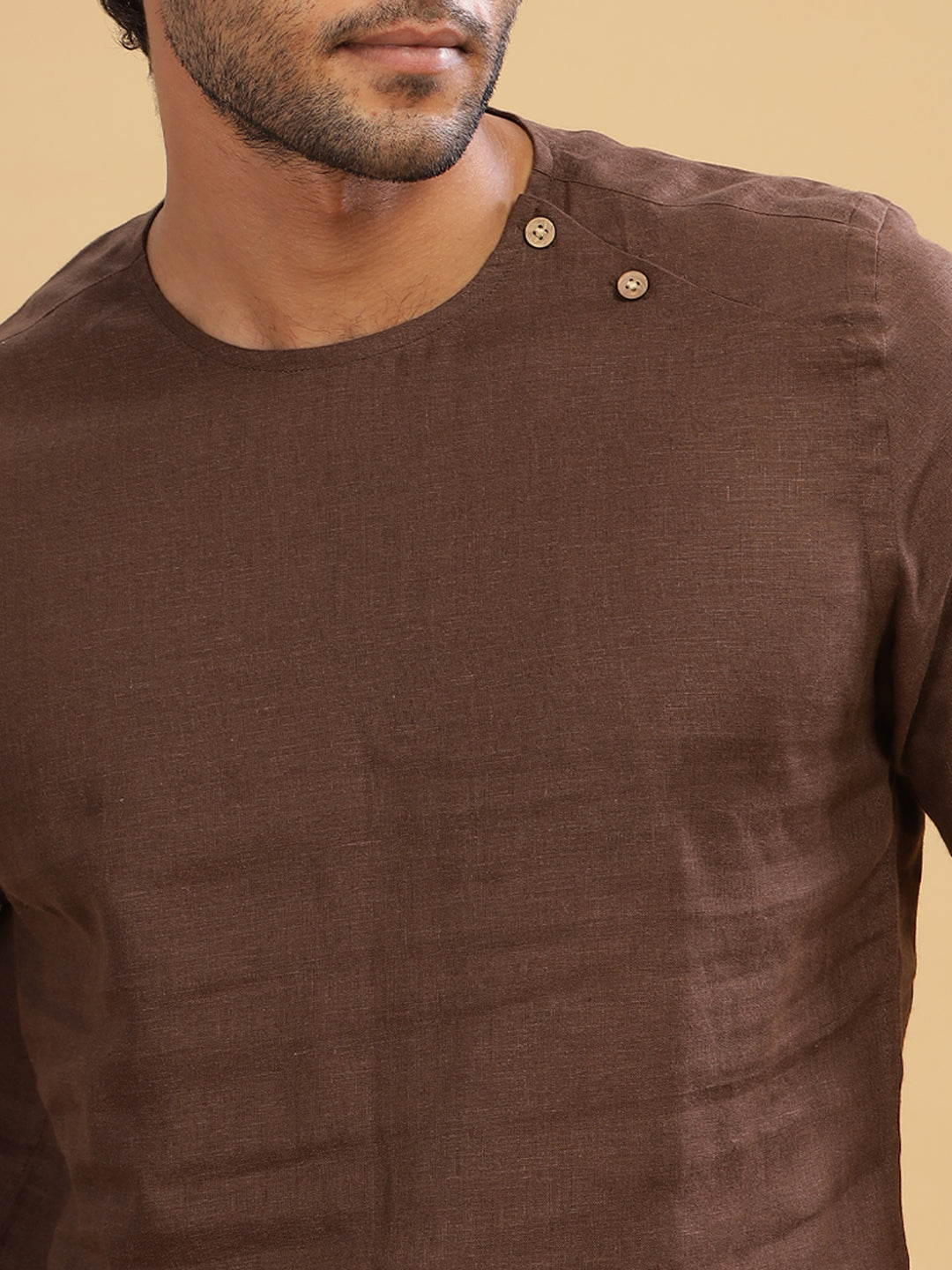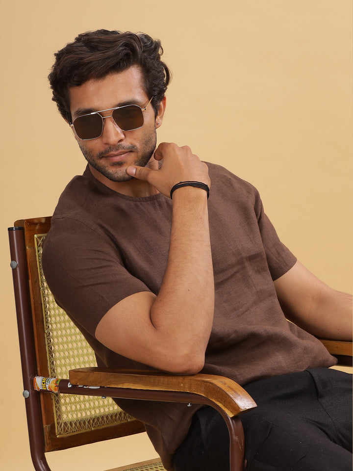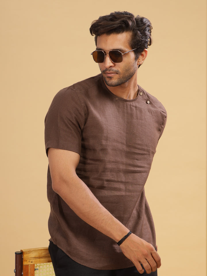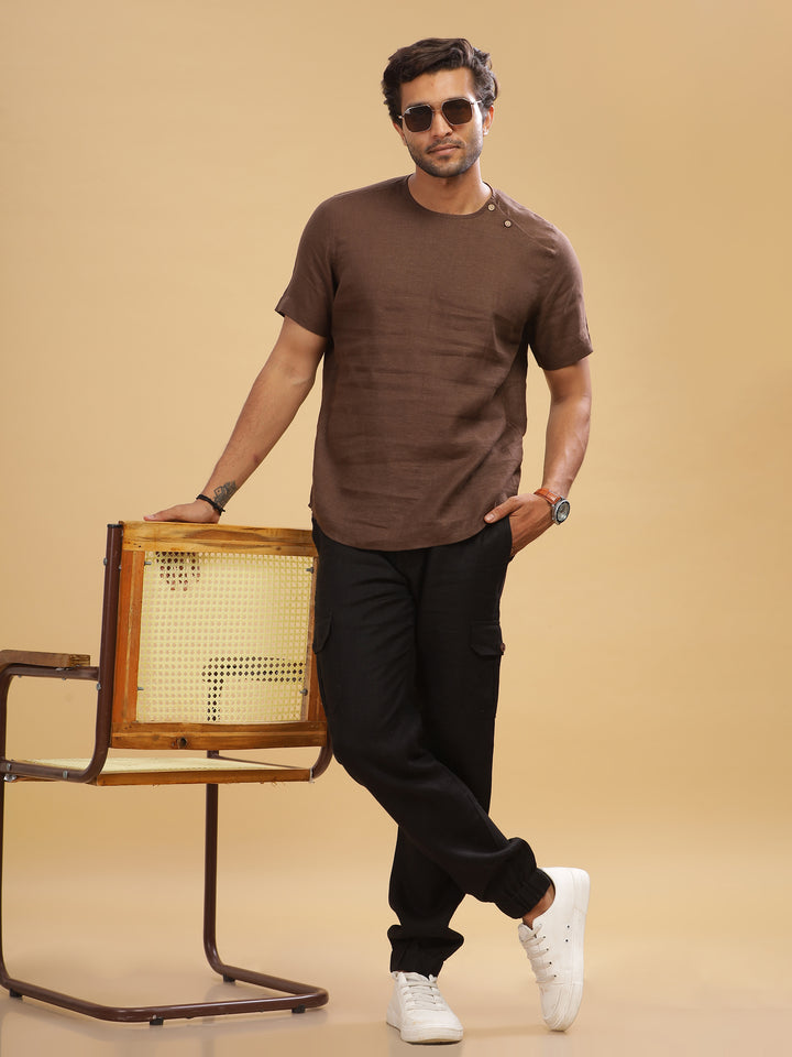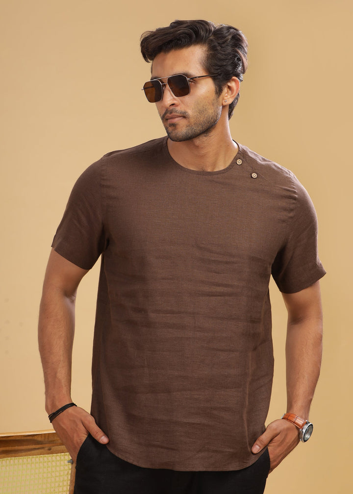 Kobe - Pure Linen Short Sleeve T-Shirt - Coffee Brown