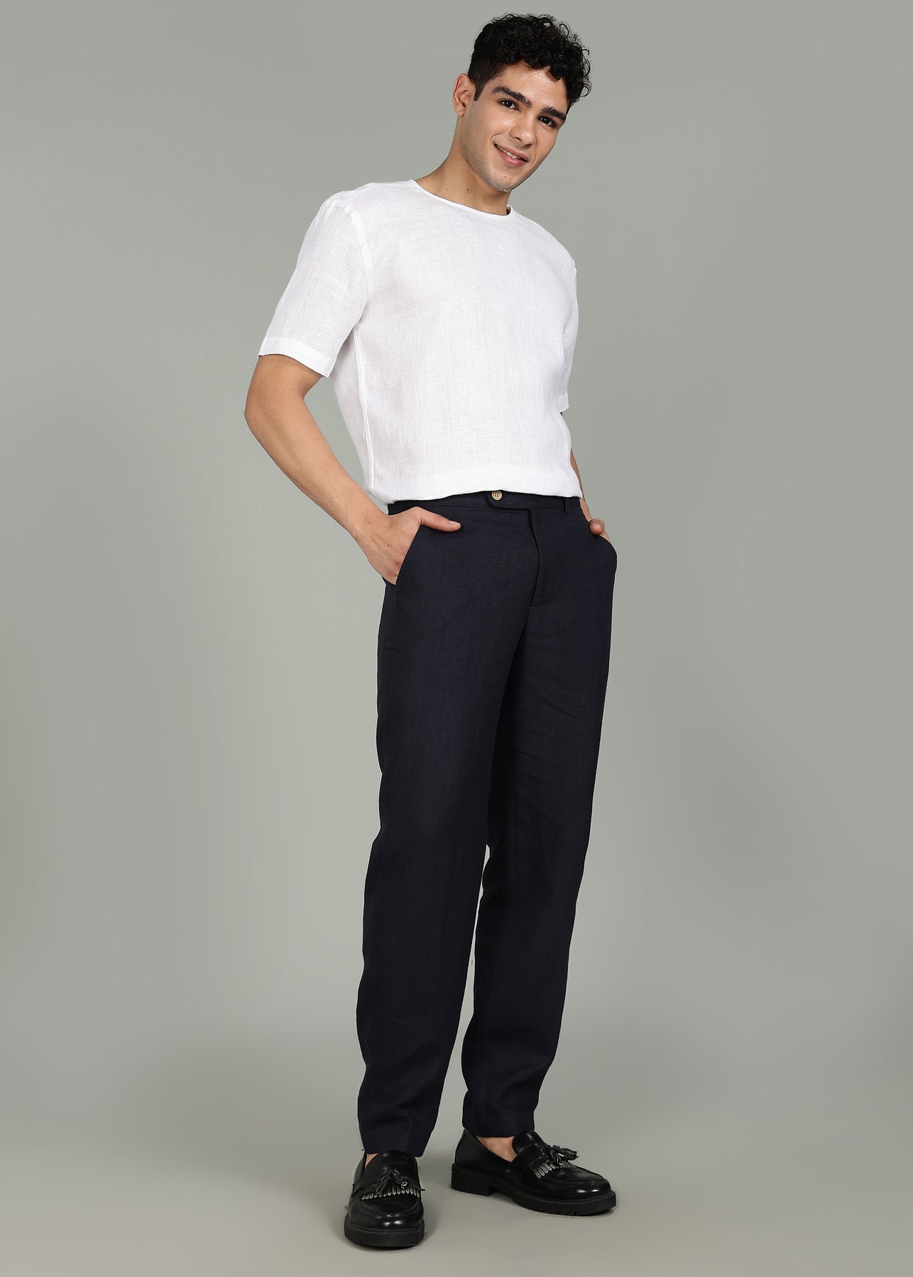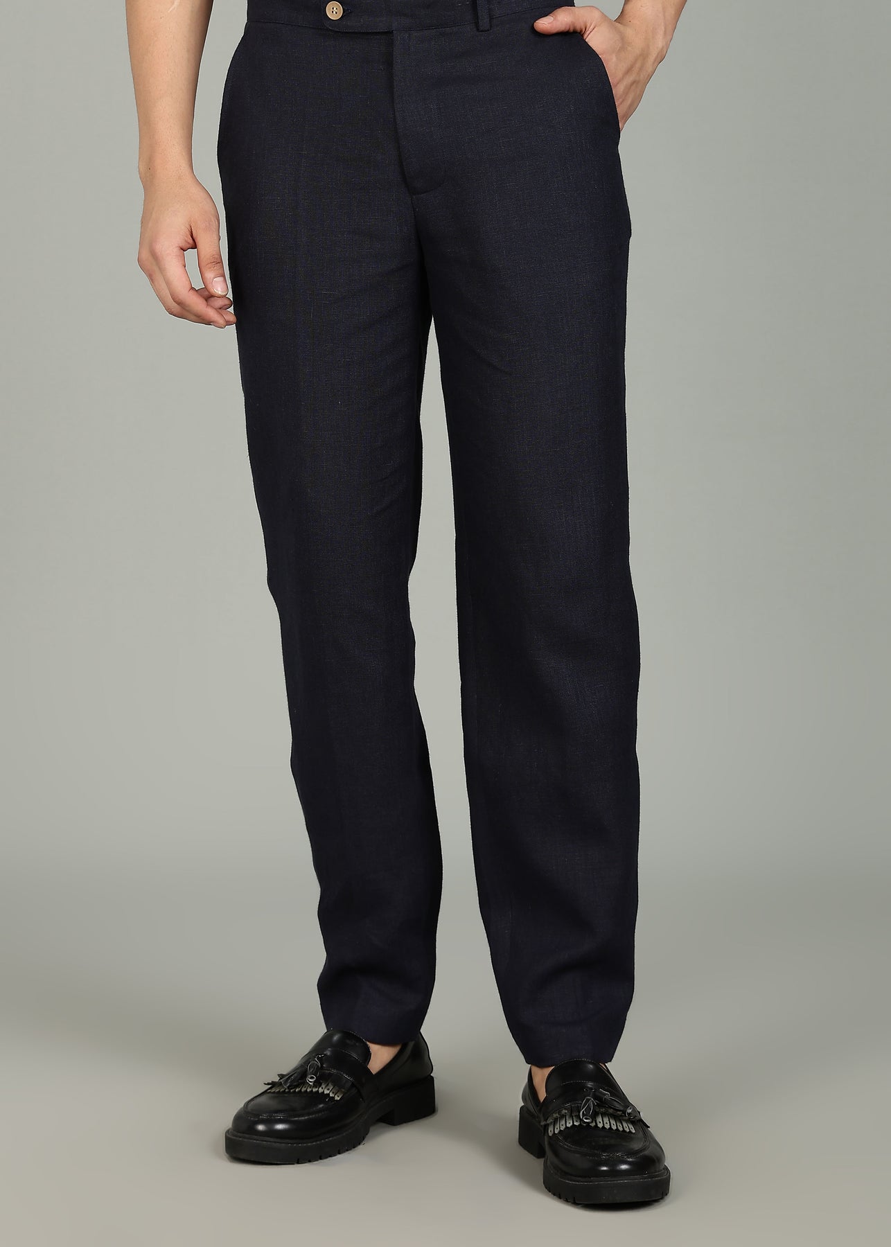 Moe - Pure Linen Extended Strap Formal Pants – Regal Blue