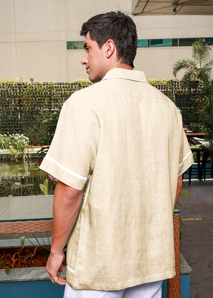 Oasis - Oversized Pure Linen Cuban Collar Short Sleeve Shirt - Light Tea Yellow