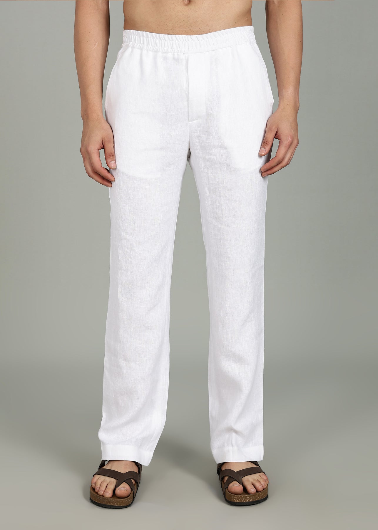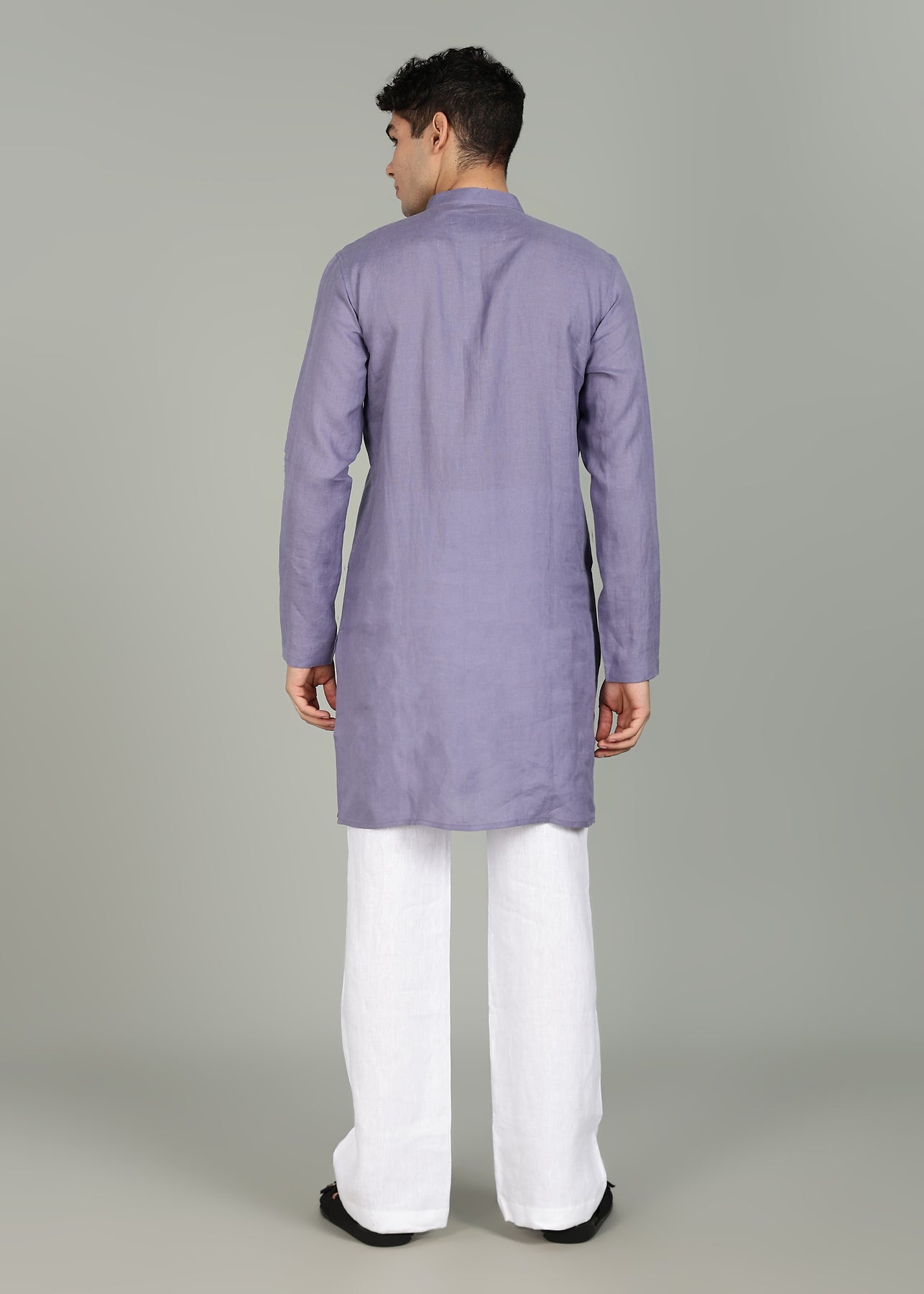 Vian Kurta Set - Pure Linen Full Sleeve Band Collar and White Kurta Pants- Lavender Violet & White